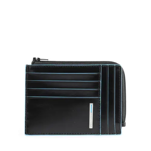 Piquadro Квадратный держатель кредитных карт RFID Blue Square из черной кожи