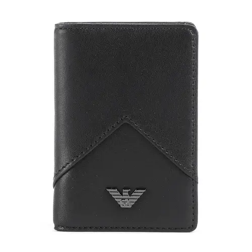 Emporio Armani Премиальный держатель для кредитных карт из овчины Nappa черного цвета