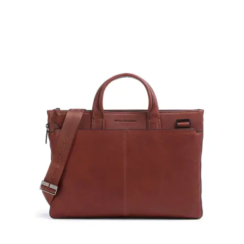 Piquadro Портфель Black Square 15 дюймов из мелкозернистой кожи табачного цвета