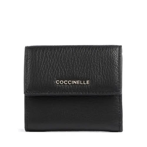 Coccinelle Мягкий металлический кошелек из зернистой кожи черного цвета