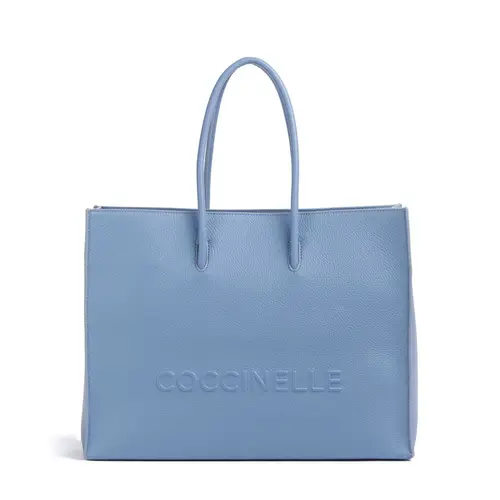 Coccinelle Сумка-шоппер Myrtha Maxi Logo из зернистой коровьей кожи синего цвета