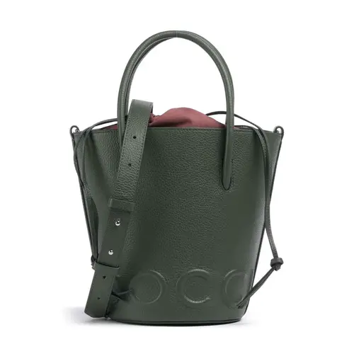 Coccinelle Сумка-ведро Myrtha Maxi Logo из зернистой коровьей кожи серо-зеленого цвета