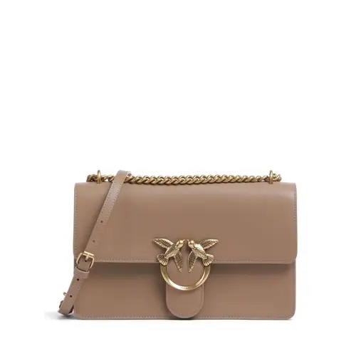 Pinko Сумка через плечо Love One Classic из мелкозернистой коровьей кожи светло-коричневого цвета