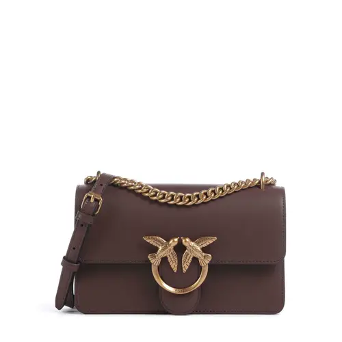 Pinko Сумка Love One Mini из мелкозернистой коровьей кожи темно-коричневого цвета