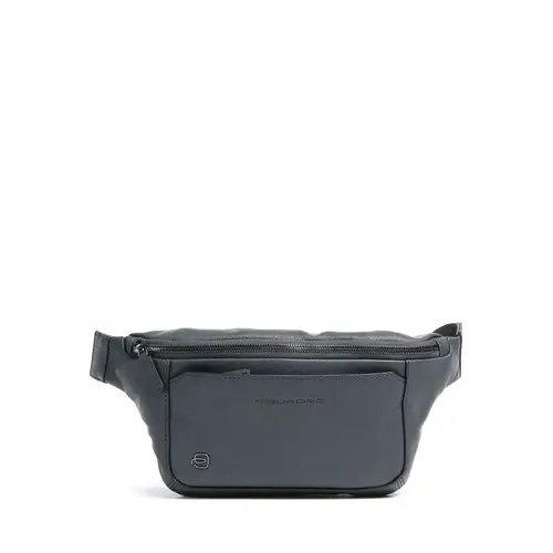 Piquadro Черная квадратная поясная сумка из зернистой коровьей кожи сине-серого цвета