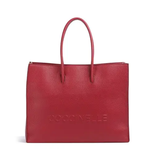 Coccinelle Сумка-шоппер Myrtha Maxi Logo из зернистой коровьей кожи красного цвета