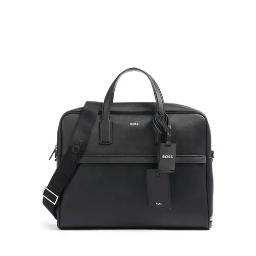 BOSS Портфель Zair 15″ из чёрной тиснёной кожи