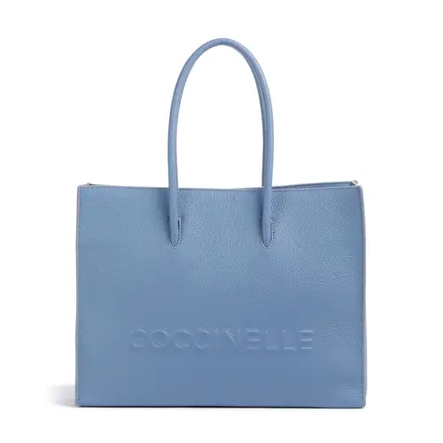 Coccinelle Сумка-шоппер Myrtha Maxi Logo из зернистой кожи синего цвета
