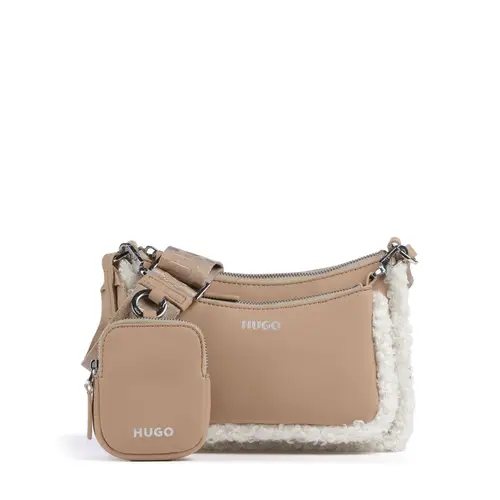 Hugo Сумка через плечо Bel из переработанного полиуретана бежевого цвета