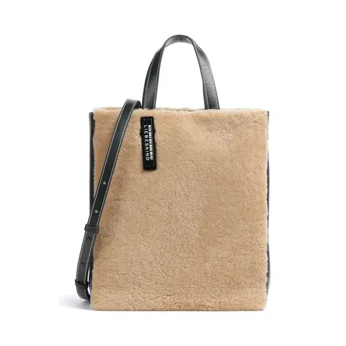 Liebeskind Сумка Paper Bag Shearling M из мелкозернистой кожи, искусственный мех коричневого/черного цвета