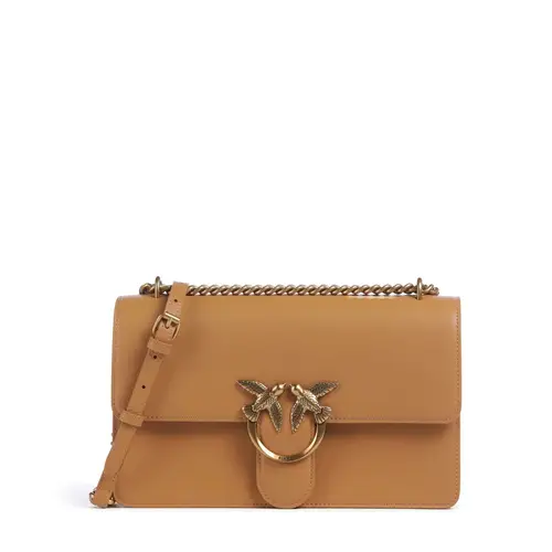Pinko Сумка через плечо Love One Classic из мелкозернистой коровьей кожи светло-коричневого цвета