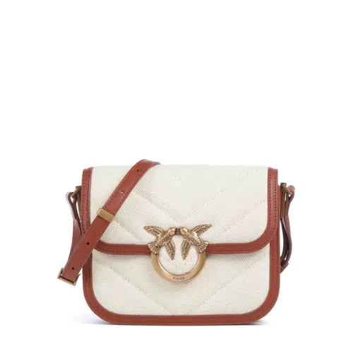 Pinko Сумка Love Box Mini через плечо из холста бежево-коричневого цвета