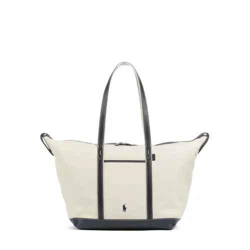 Polo Ralph Lauren Большая холщовая сумка-шоппер бежево-синего цвета