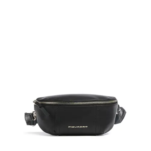 Piquadro Круглая поясная сумка из мелкозернистой коровьей кожи черного цвета